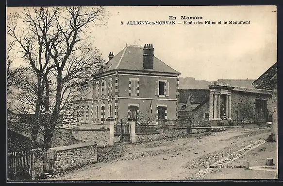 AK Alligny-en-Morvan, École des Filles et le Monument