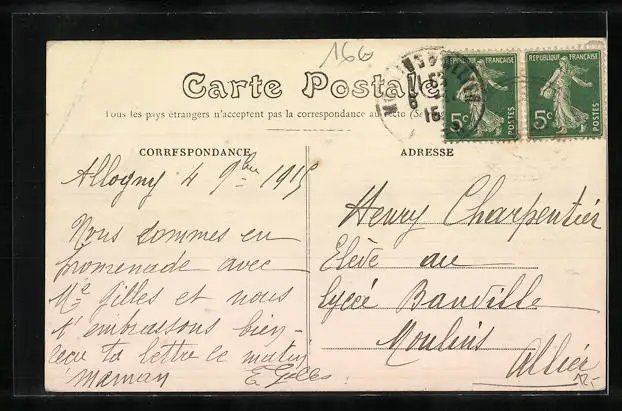 gelaufen 1915, Stempelspur, sonst guter Zustand
