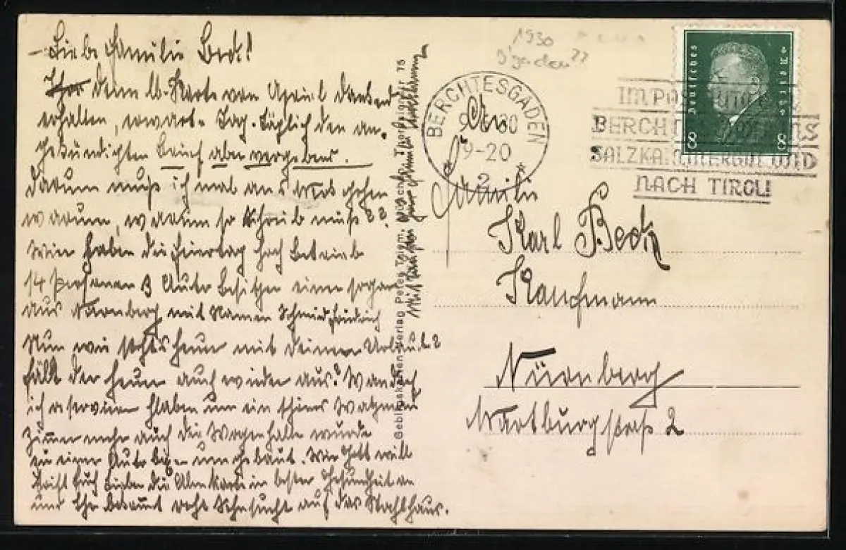 alte Ansichtskarte, gelaufen 1930, guter Zustand