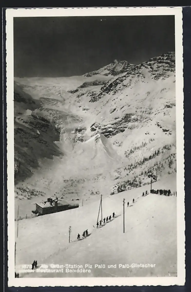 AK Alp Grüm, Station Piz Palü und Palü-Gletscher vom Restaruant Belvédère