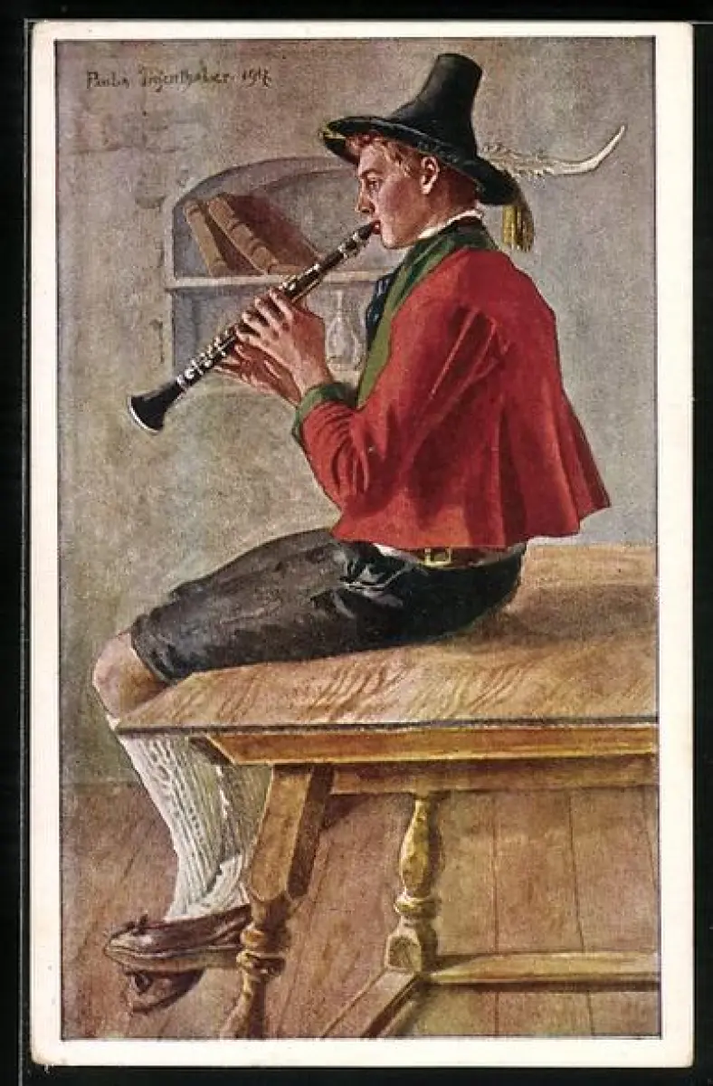 AK Alpen-Volkstrachten: Musikant mit Flöte aus dem Pustertal, Tirol