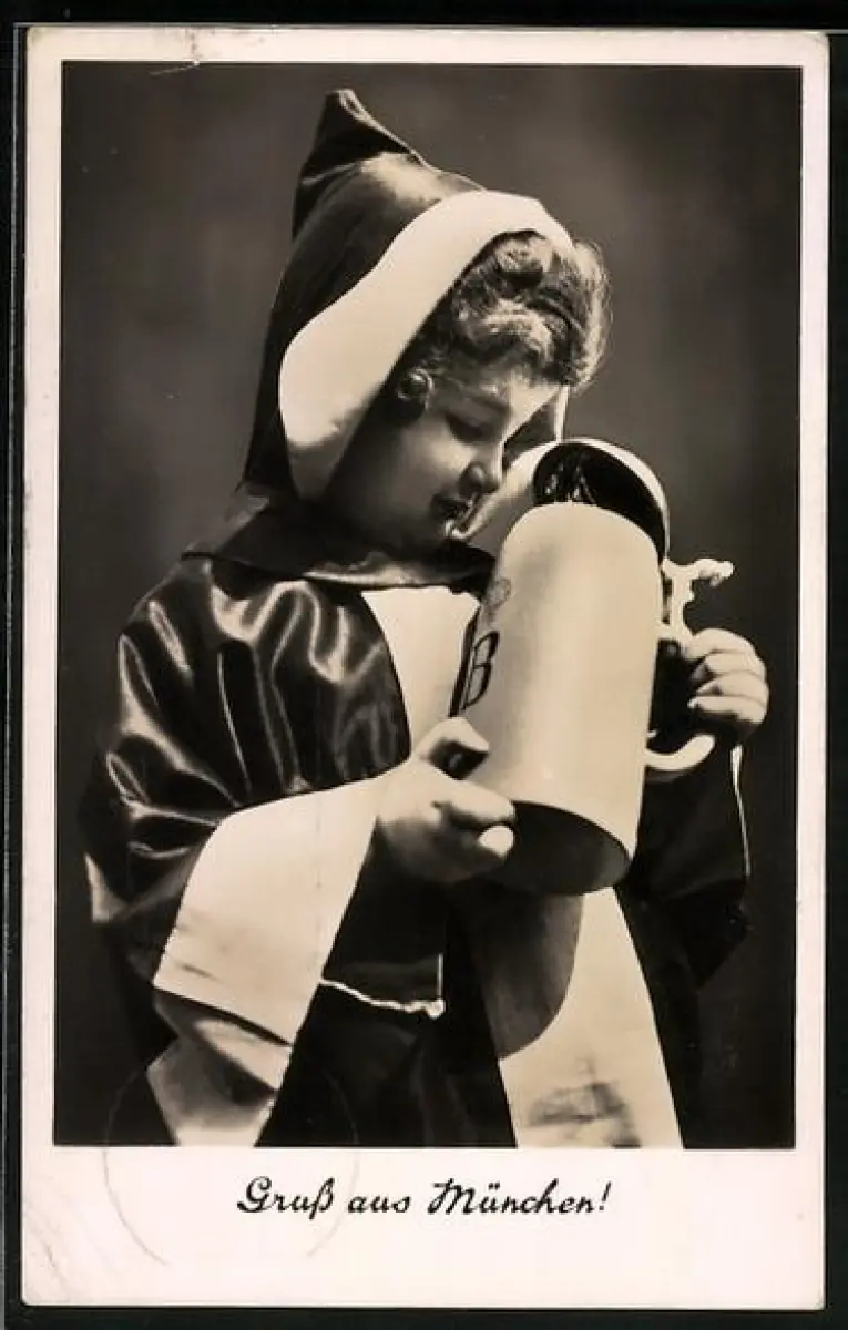 AK Als Münchner Kindl verkleidetes Kind mit Bierkrug