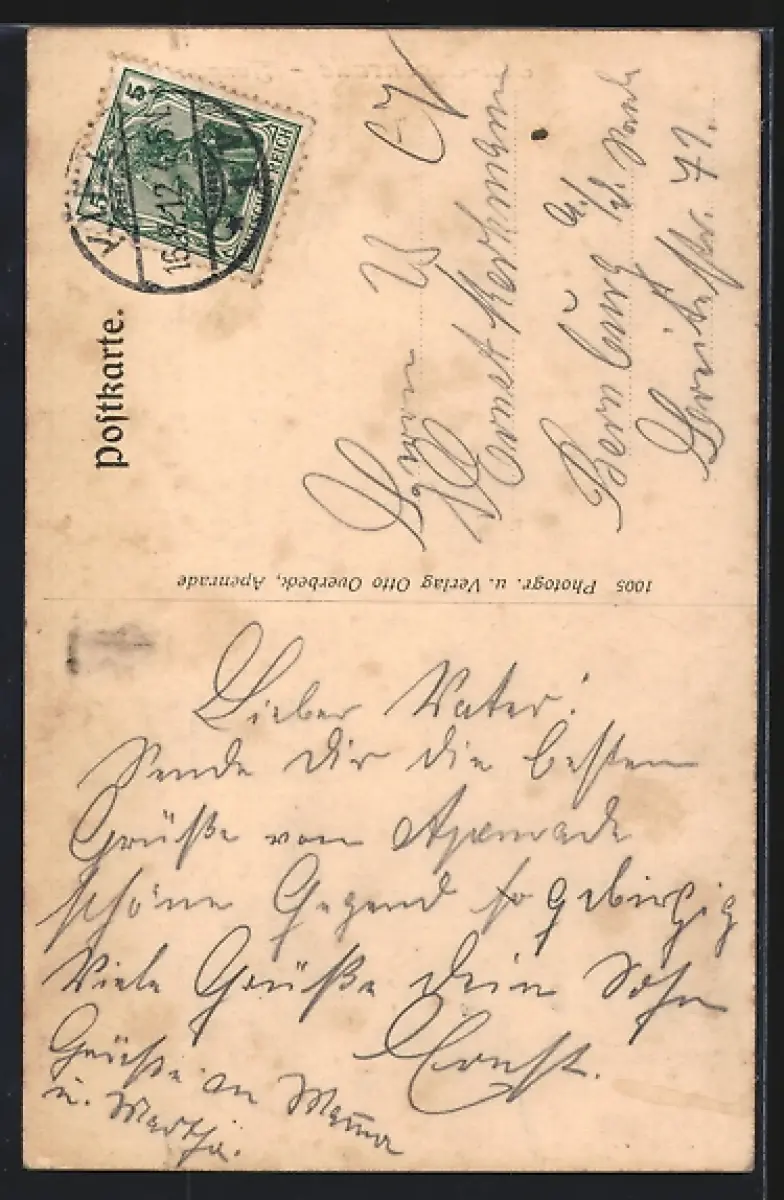 alte Ansichtskarte, gelaufen 1912, Eckknick re. oben, guter Zustand