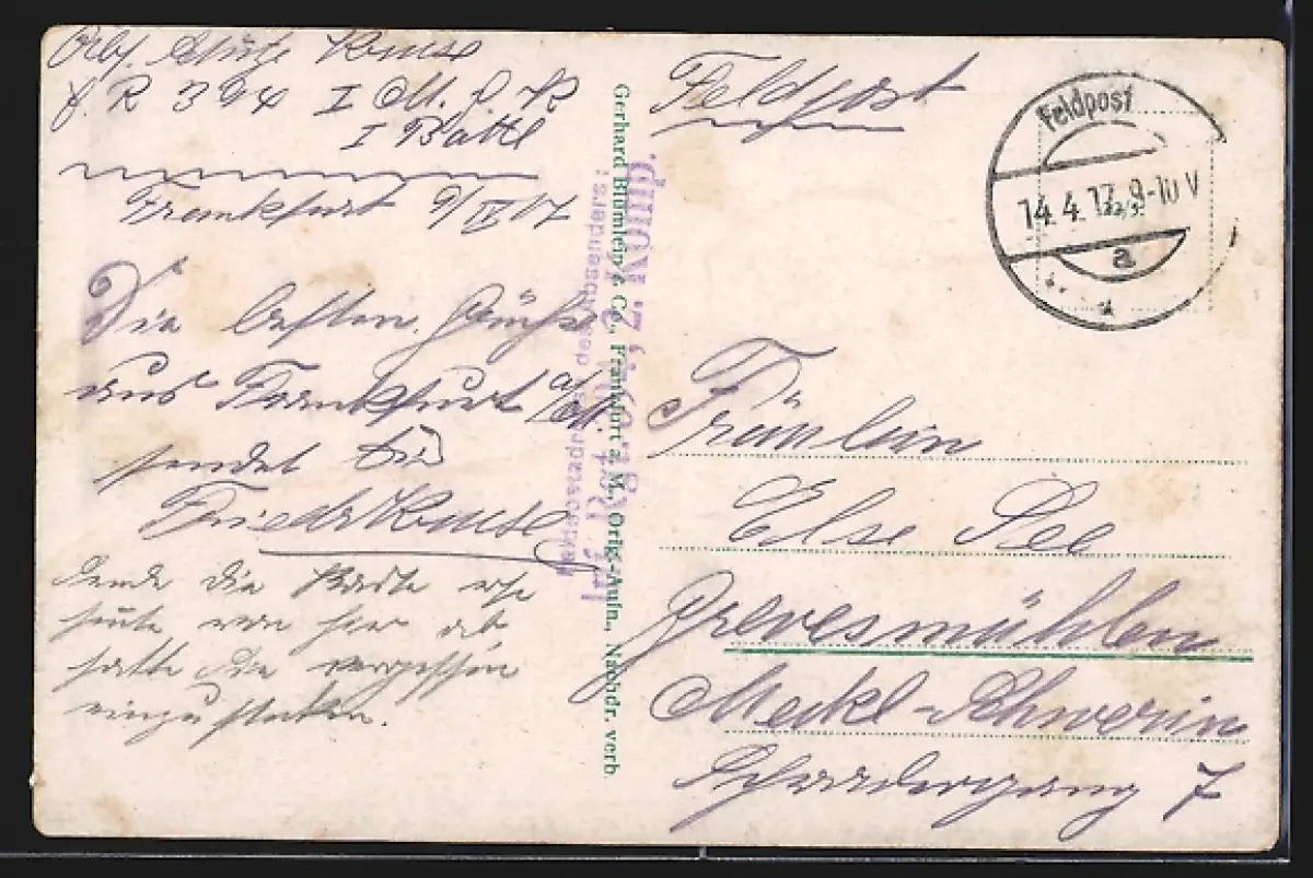 alte Ansichtskarte, gelaufen 1917, Eckknick oben links, guter Zustand