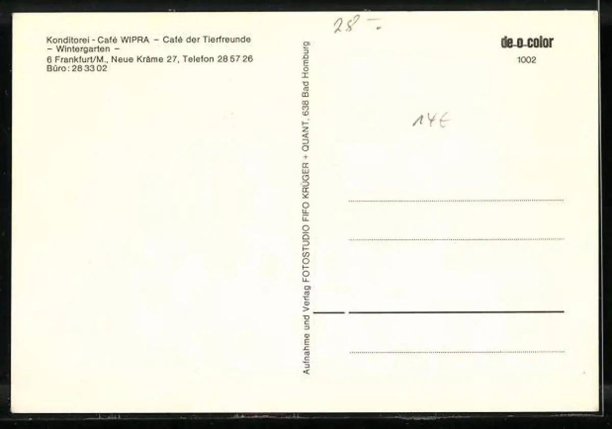 AK Alt-Frankfurt, Konditorei-Café Wipra, Strasse Neue Kräme 27