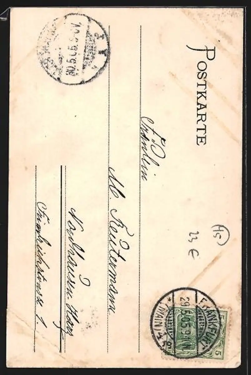 alte Ansichtskarte, gelaufen 1905, Eckknicke unten, Albumspuren, guter Zustand