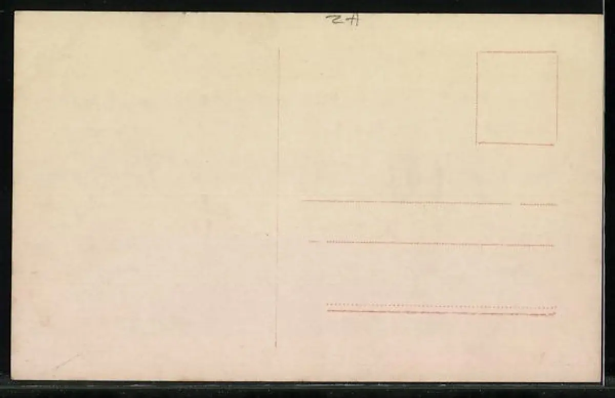 Personenbezogene Daten auf der Rückseite der Karte wurden durch blauen Textmarker unkenntlich gemacht. Die blauen Stellen sind auf die Vorderseite durchgeweicht und wirken sich negativ auf das Postkartenfoto aus