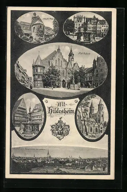 AK Alt-Hildesheim, Rathaus, Dom, Rolandbrunnen