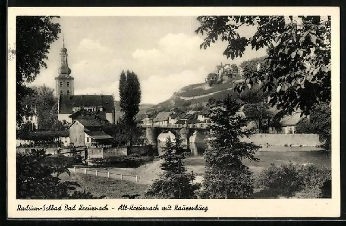AK Alt-Kreuznach, Ortspartie mit Kirche und Kauzenburg