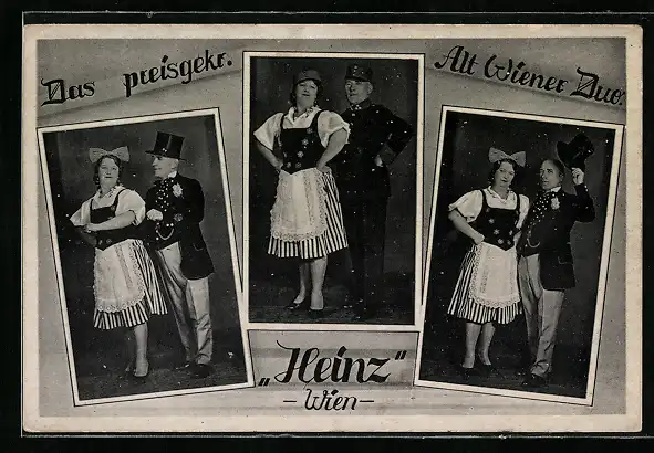 AK Alt-Wiener Duo Heinz in Trachten mit Zylinder und Schleife