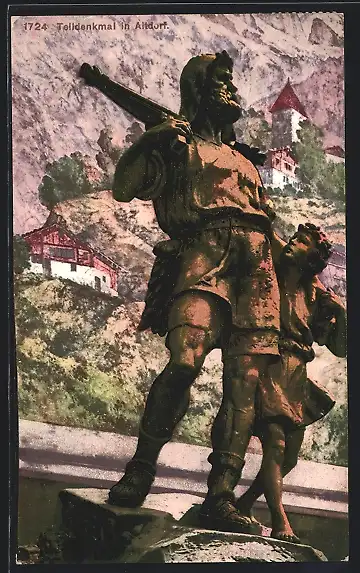 AK Altdorf, Telldenkmal mit Kirche