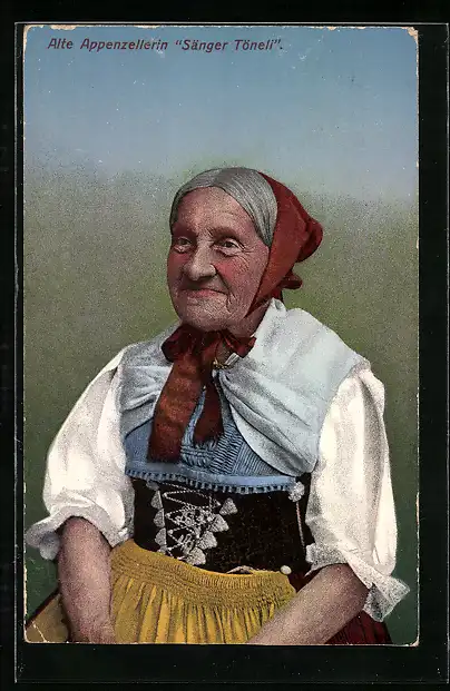 AK Alte Appenzellerin Sänger Töneli in hübscher Tracht