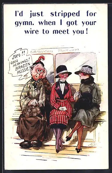 AK Alte Frau missversteht zwei jüngere Frauen in der Strassenbahn