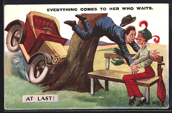AK Alte Jungfer freut sich über Unfallfahrer, der auf ihrem Schoss landet
