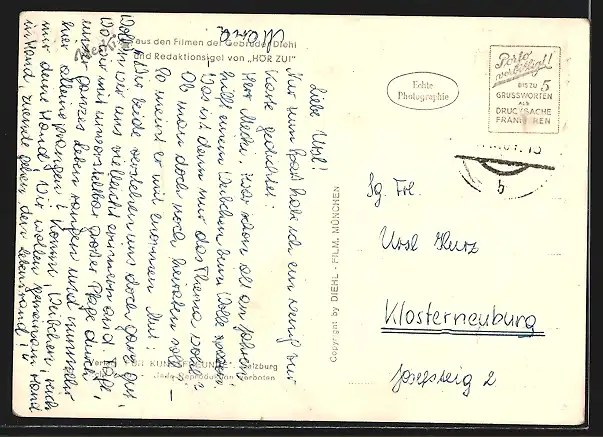 alte Ansichtskarte, gelaufen, Briefmarke entfernt, Bugspuren oberer Rand, guter Zustand