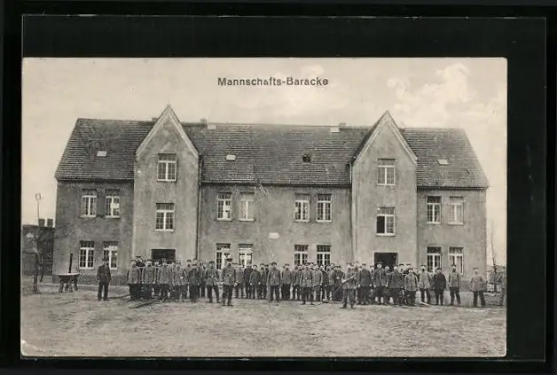 AK Alten-Grabow, Mannschafts-Baracke mit Soldaten
