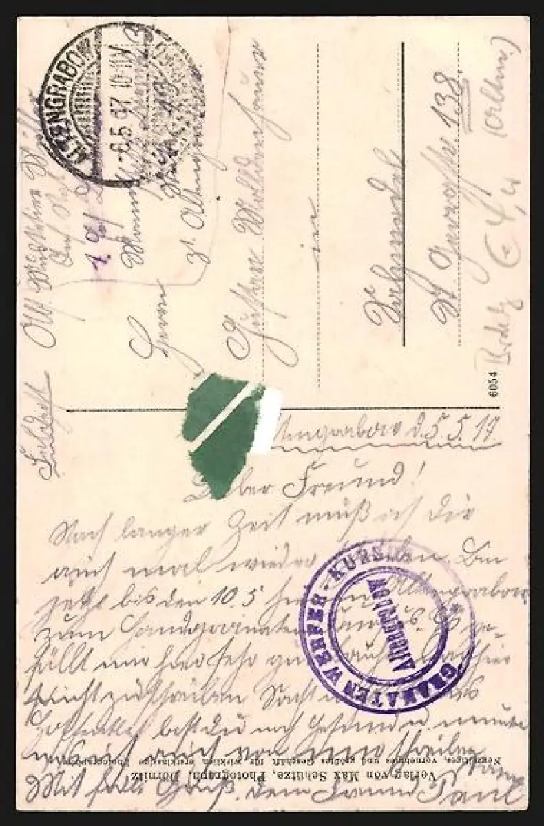 alte Ansichtskarte, gelaufen als Feldpost, rückseitig Klebe- und Papierreste, guter Zustand