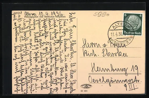 alte Ansichtskarte, gelaufen 1936, guter Zustand