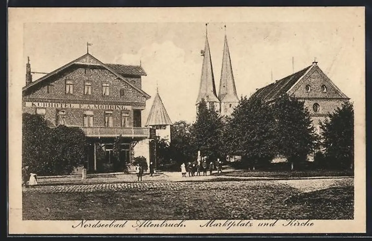 AK Altenbruch, Marktplatz, Kirche, Kurhotel F. A. Möhring