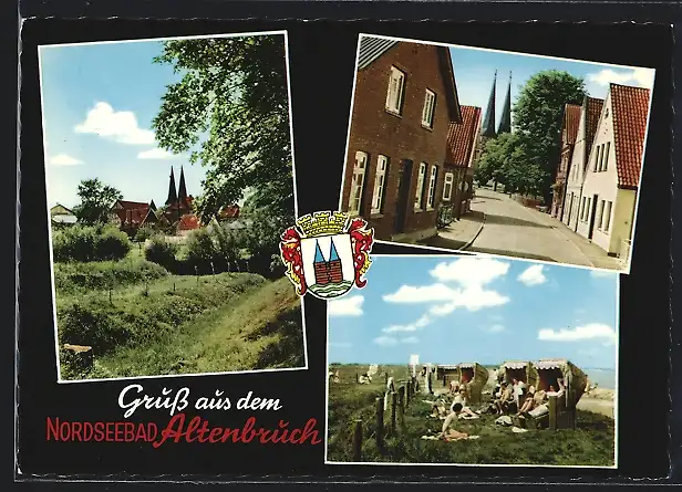 AK Altenbruch, Ortsansicht, Strassenpartie und Strand