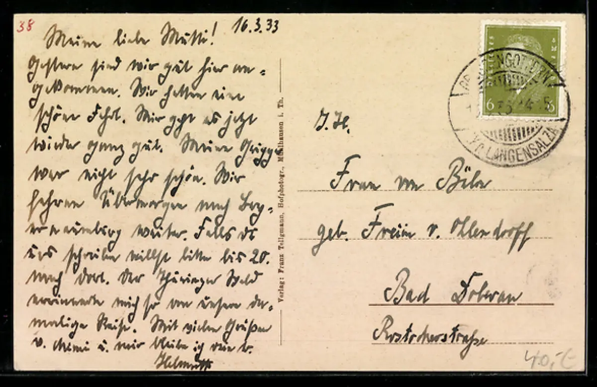 alte Ansichtskarte, gelaufen 1933, guter Zustand