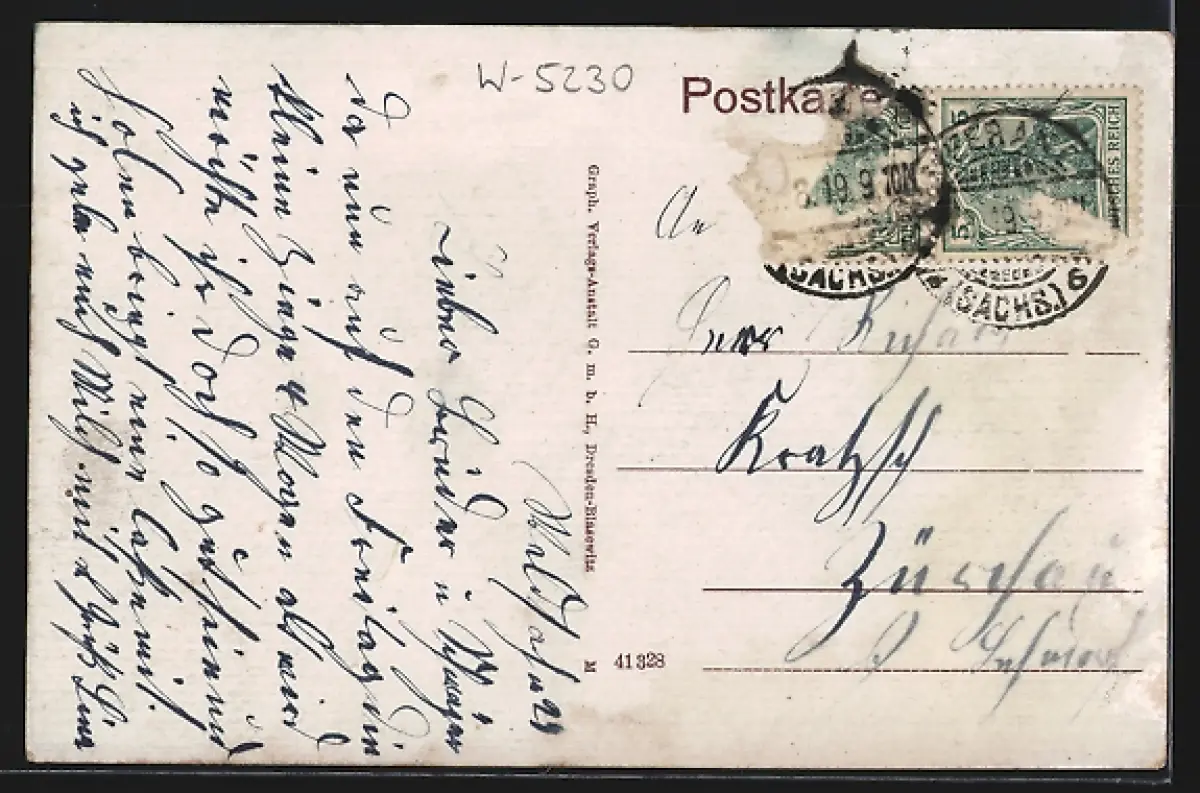 alte Ansichtskarte, gelaufen 1919, Briefmarke entfernt, guter Zustand