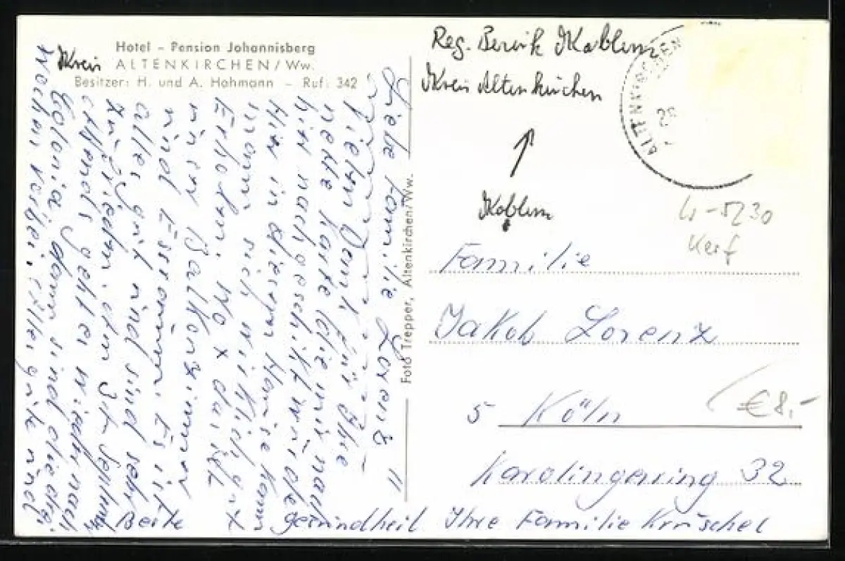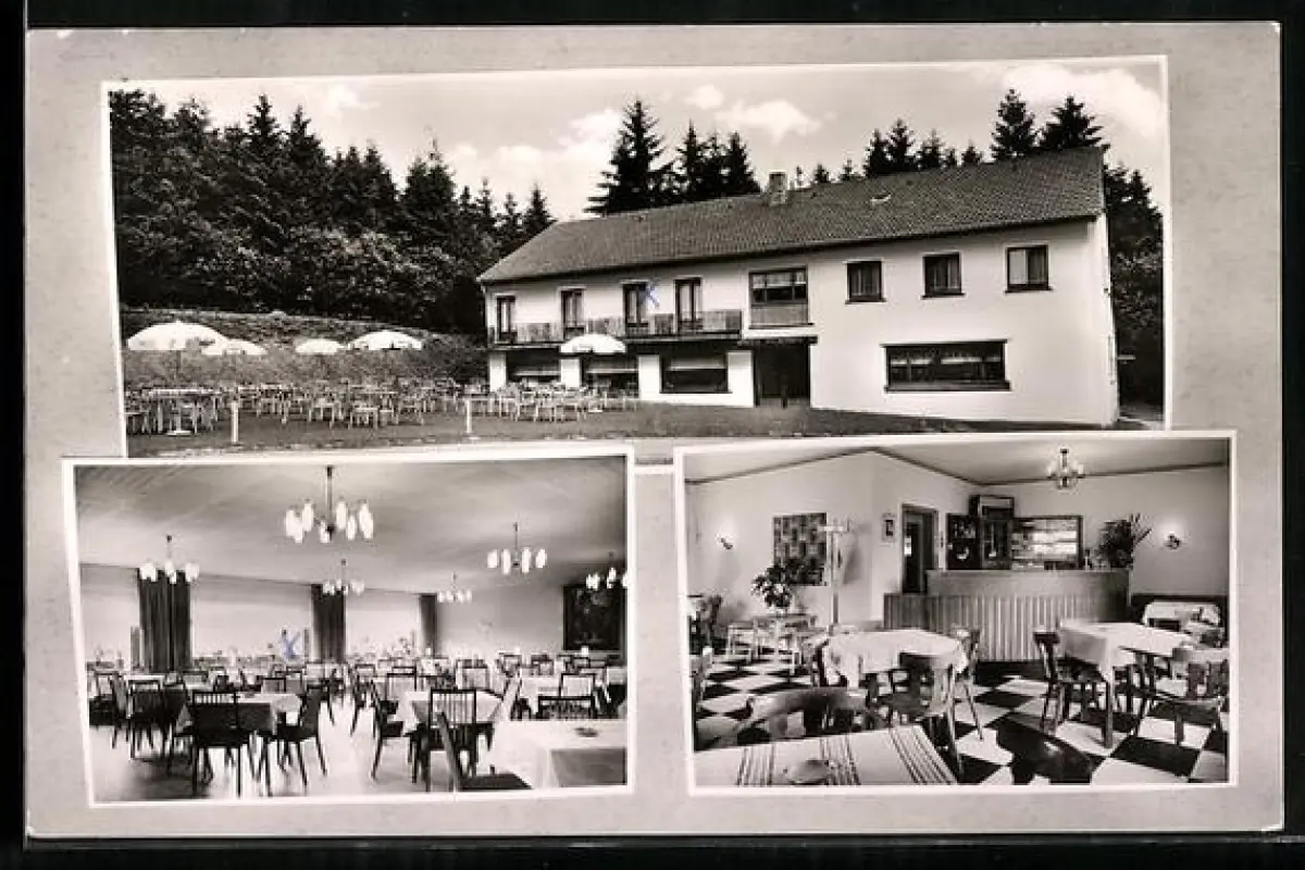AK Altenkirchen /Ww., Hotel-Pension Johannisberg, Besitzer H. und A. Hohmann, Gastraum, Terrasse