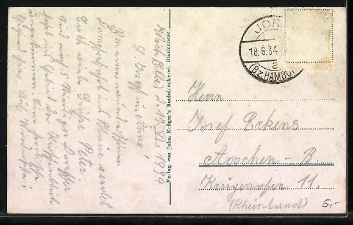 alte Ansichtskarte, gelaufen 1934, Briefmarke entfernt, guter Zustand