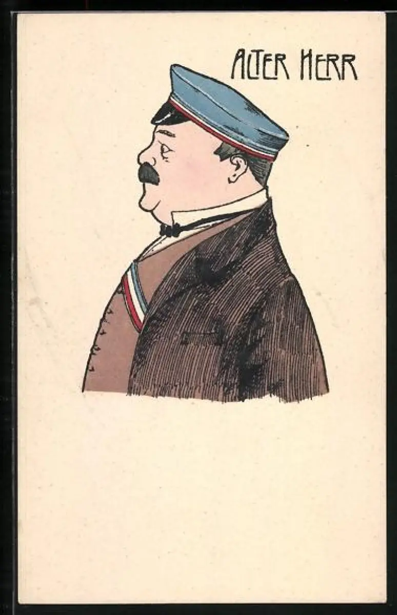 AK Alter Herr beim Abschieds-Kommers der Abiturienten des Freimaurer-Instituts 1907
