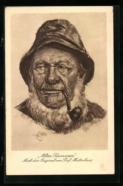 AK Alter Seemann mit Tabakspfeife, Fischerei
