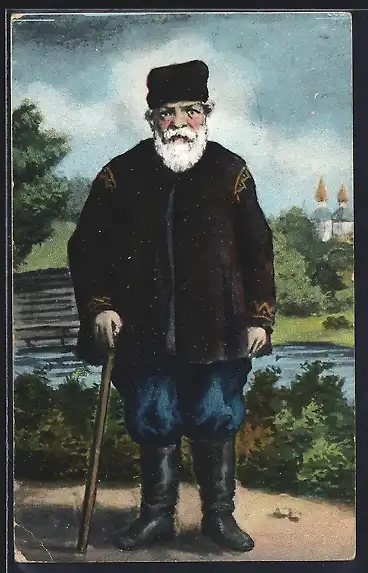 AK Alter Ukrainer in Tracht mit weissem Bart und Stock