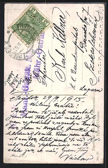 gelaufen 1915, Eckknick unten li., guter Zustand