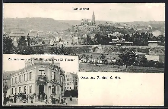 AK Altkirch, Restaurant zur Stadt Mülhausen von Ch. Fischer, Totalansicht