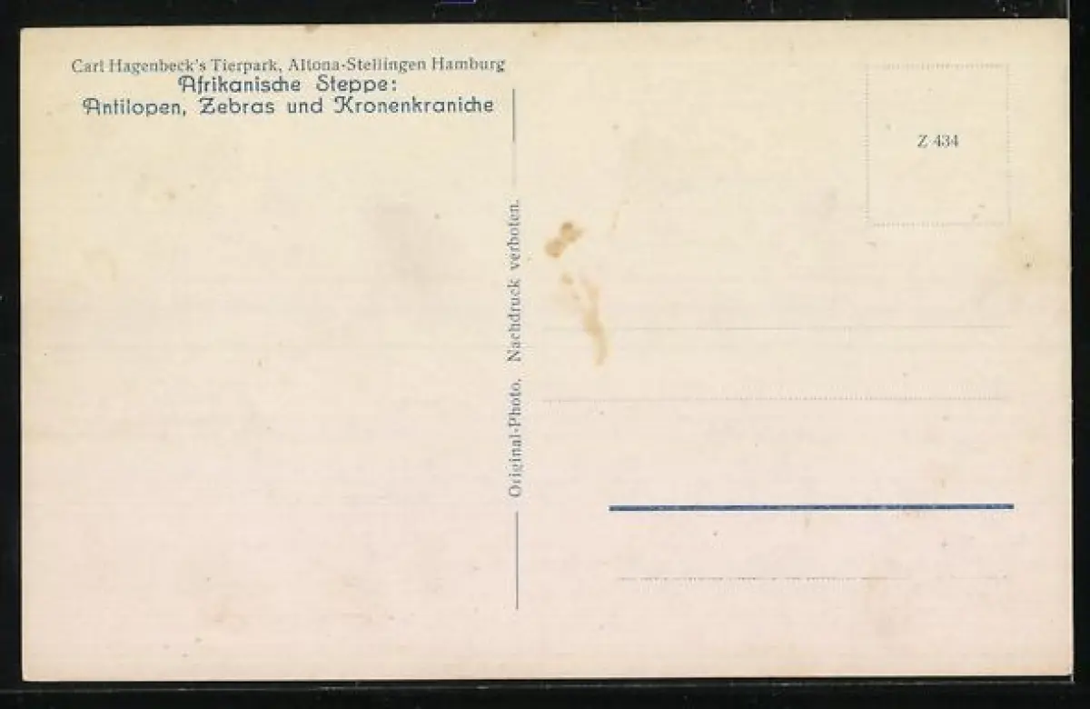 AK Altona-Stellingen, Carl Hagenbeck`s Tierpark, Afrikanische Steppe, Antilopen, Zebras u. Kronenkraniche