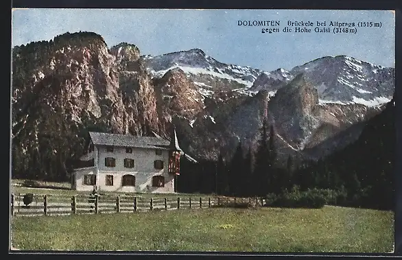 AK Altprags, Gasthof Brückele gegen die Hohe Gaisl