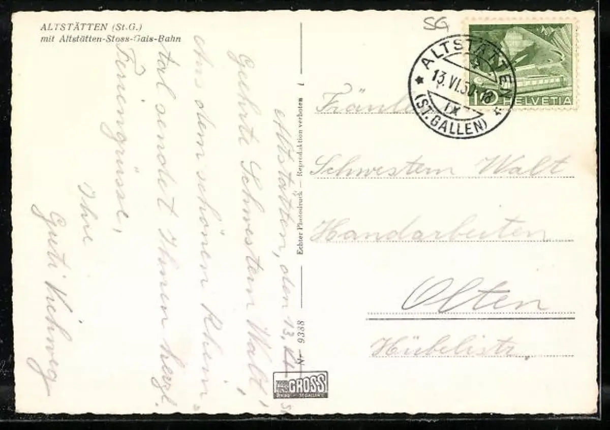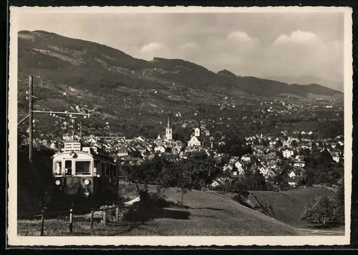 AK Altstätten-Stoss-Gais-Bahn, Bergbahn mit Ortspanorama