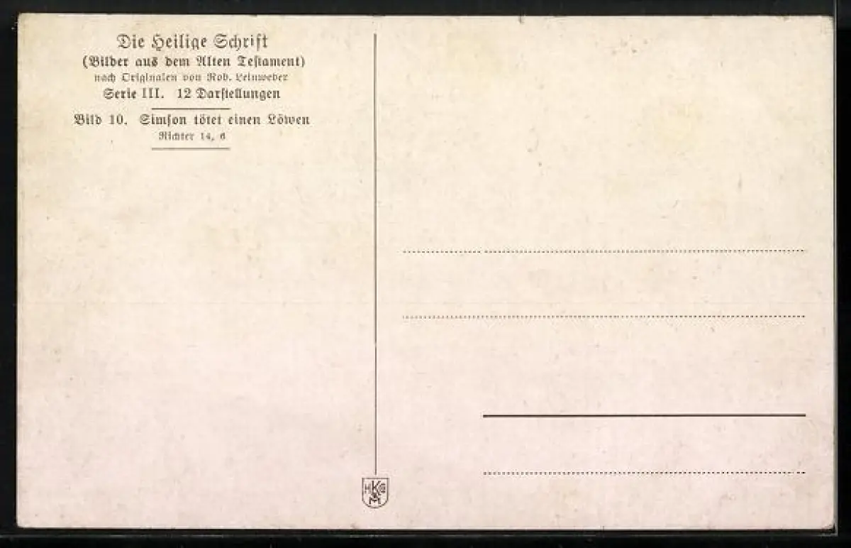 AK Alttestamentische Bilder, Simson tötet einen Löwen