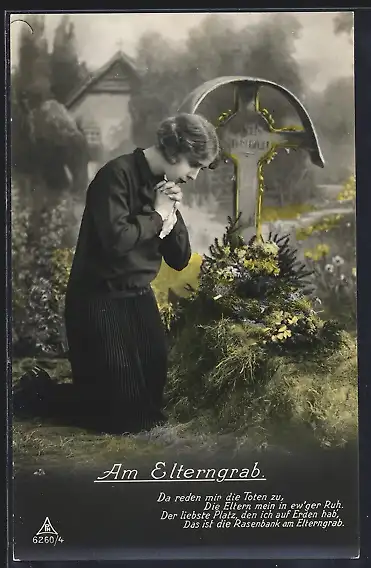 AK Am Elterngrab, Da reden mir die Toten zu..., Kniende Frau