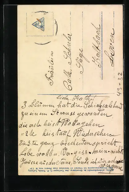alte Ansichtskarte, gelaufen, Briefmarke entfernt, guter Zustand