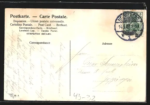 alte Ansichtskarte, gelaufen 1907, Eckknick re. unten, guter Zustand