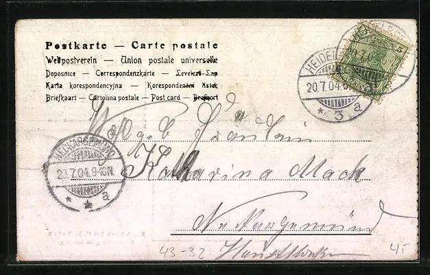 alte Ansichtskarte, gelaufen 1904, Bugspur unten re., guter Zustand