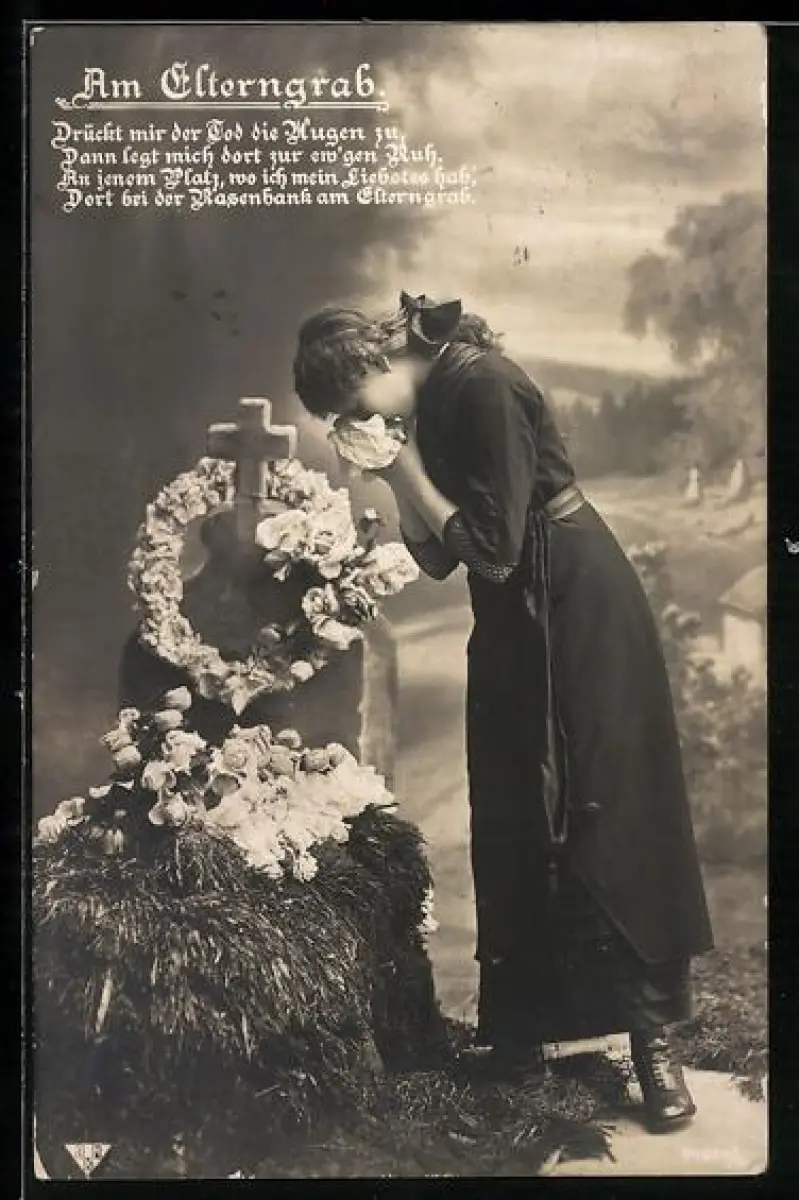 AK Am Elterngrab, weinende Frau