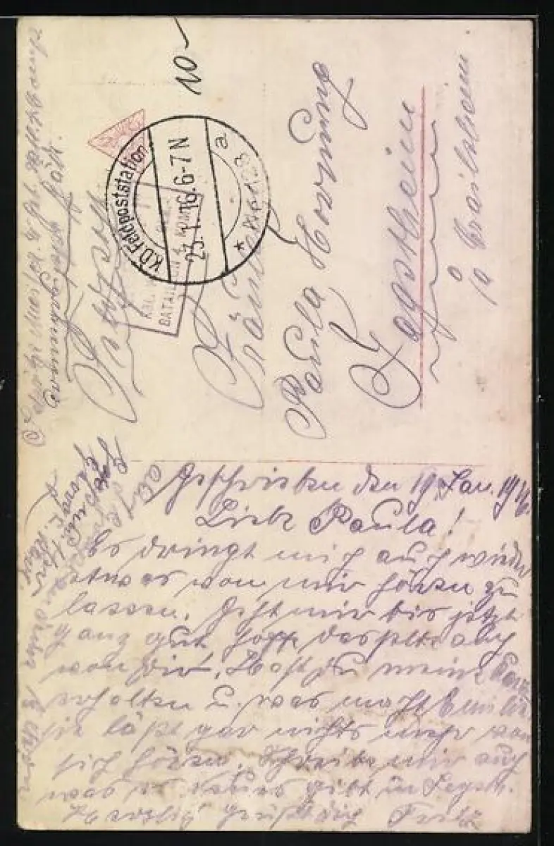gelaufen 1916, Eckknick re. oben, Bugspur mitte unten, guter Zustand