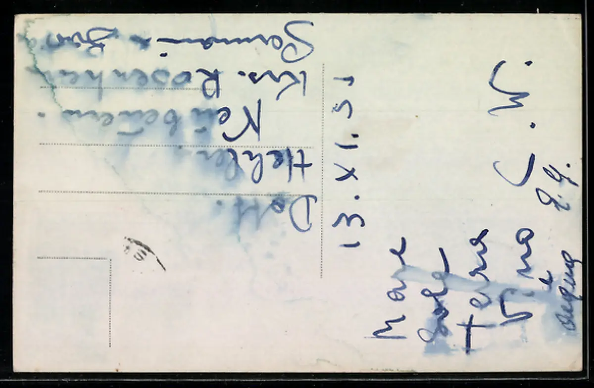 alte Ansichtskarte, gelaufen, Briefmarke entfernt, guter Zustand