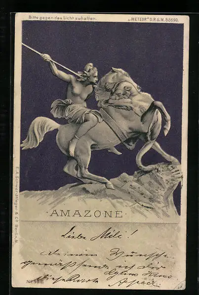 AK Amazone zu Pferde, Halt gegen das Licht
