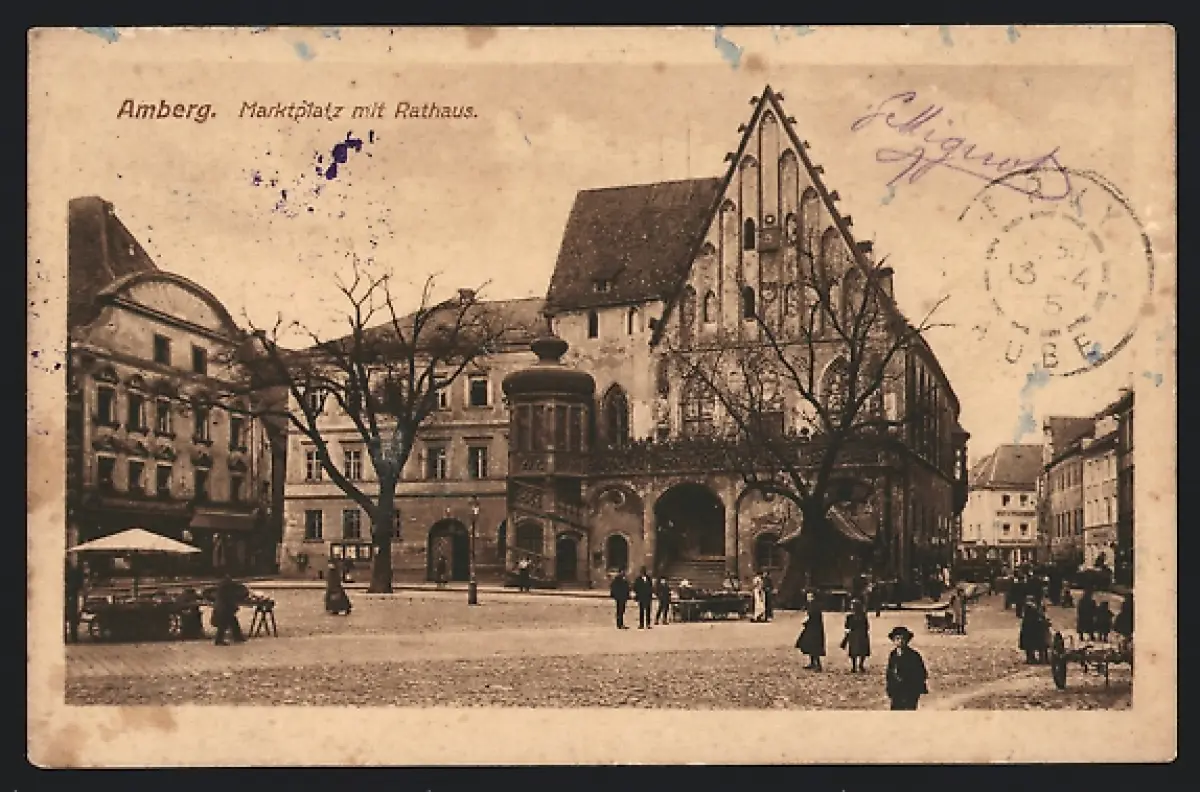 AK Amberg, Marktplatz mit Rathaus