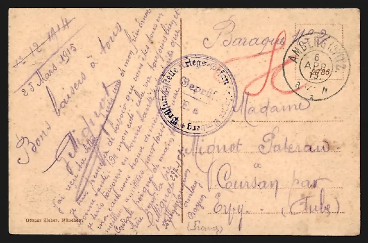 gelaufen 1915, Stempelspur, guter Zustand
