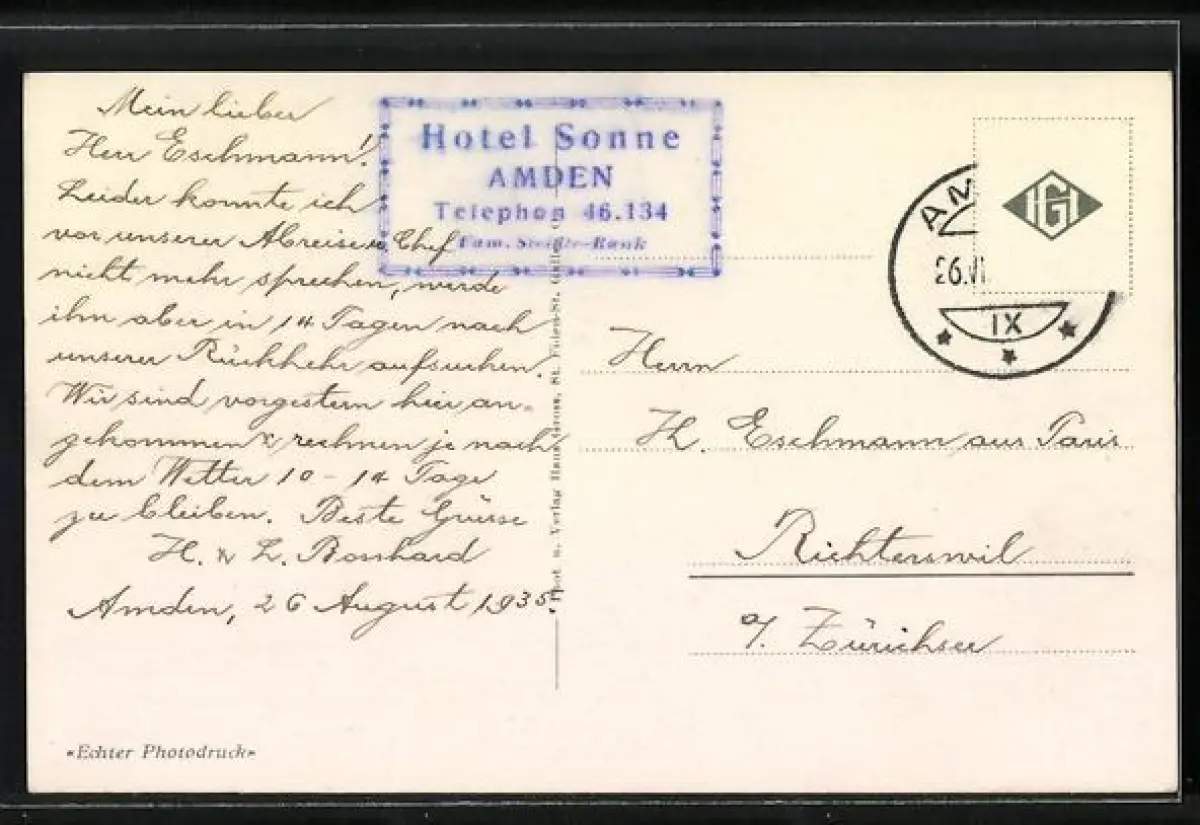 alte Ansichtskarte, gelaufen, Briefmarke entfernt, guter Zustand