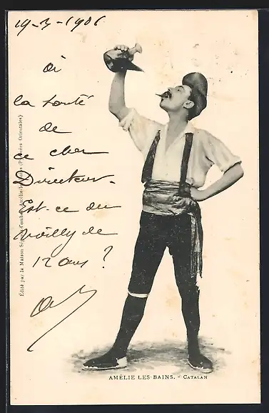 AK Amélie-les-Bains, Catalan buvant à la gourde