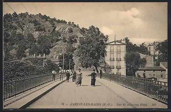 AK Amélie-les-Bains, Sur le nouveau pont avec vue sur les collines et bâtiments environnants